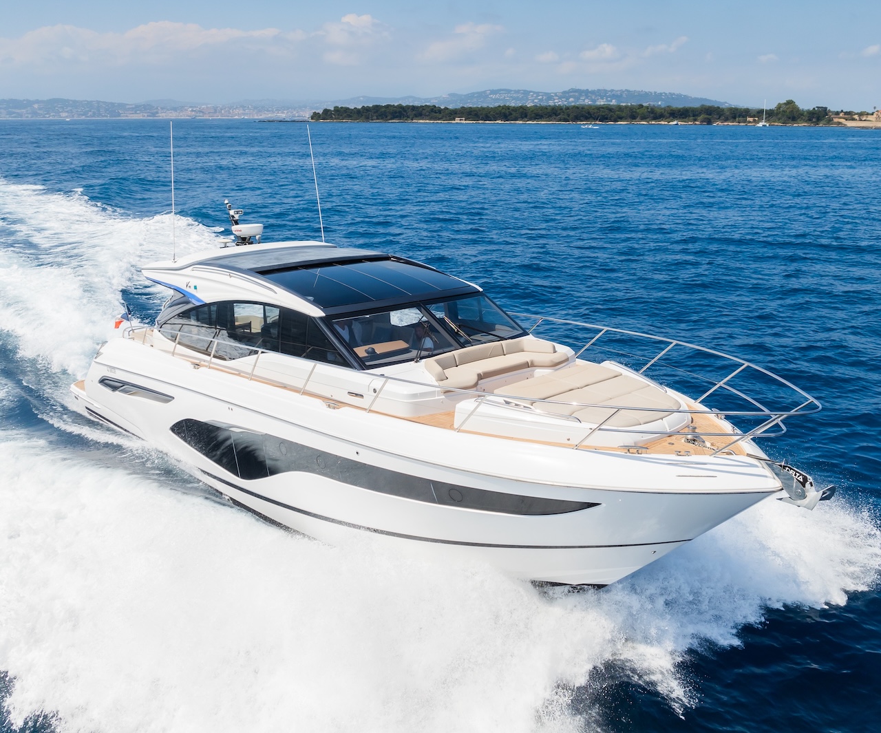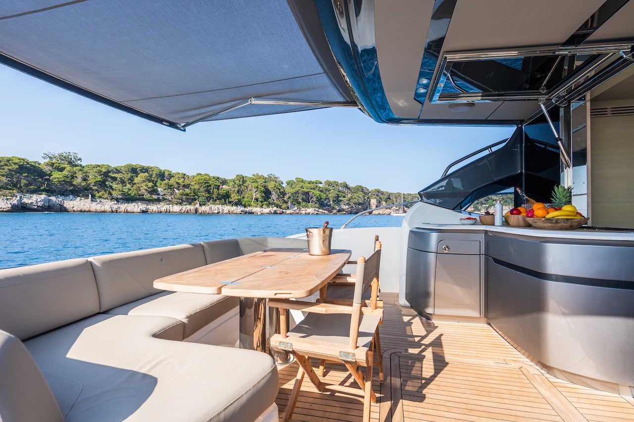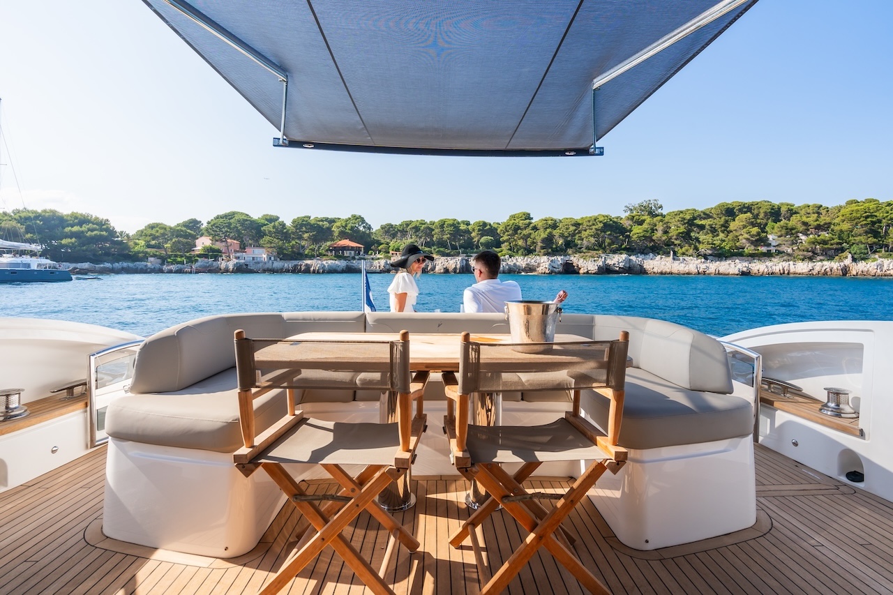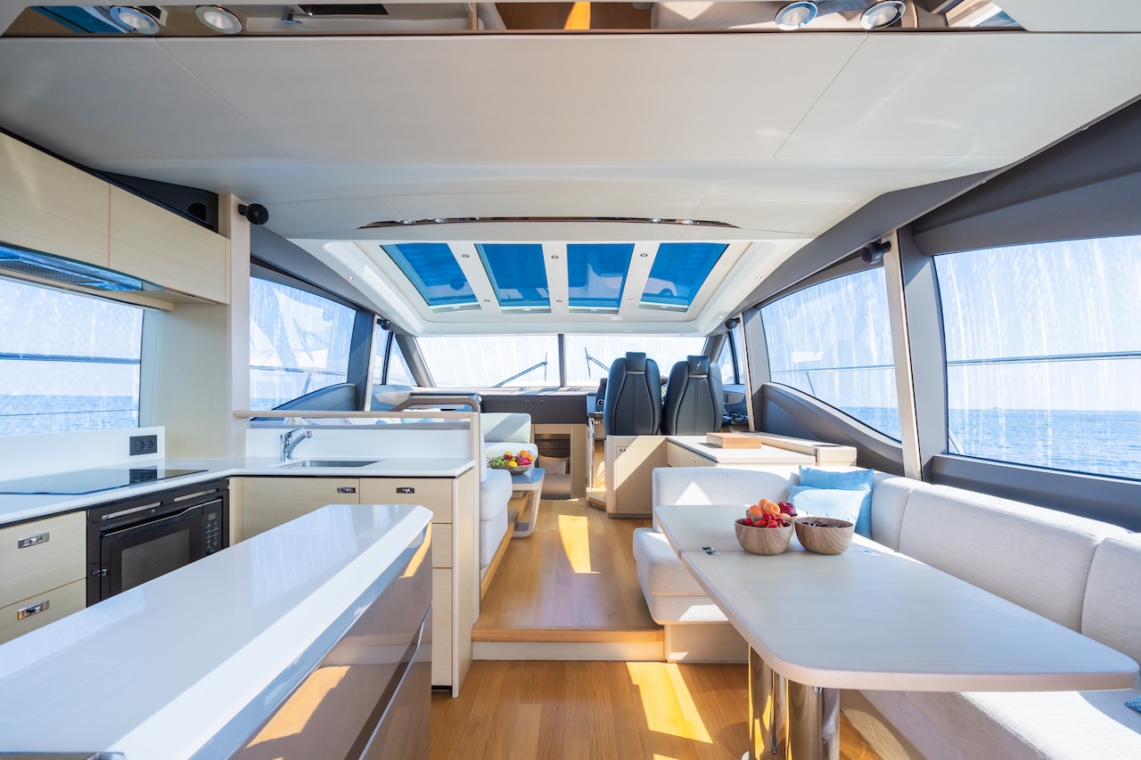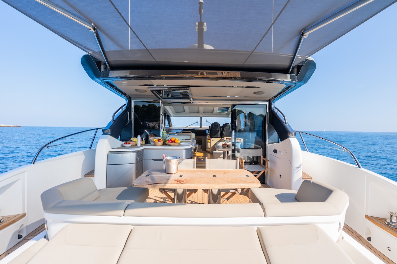 - Design & Comfort: Combines sporty elegance with comfort—spacious cockpit, main saloon, open dining area, and panoramic retractable hardtop.