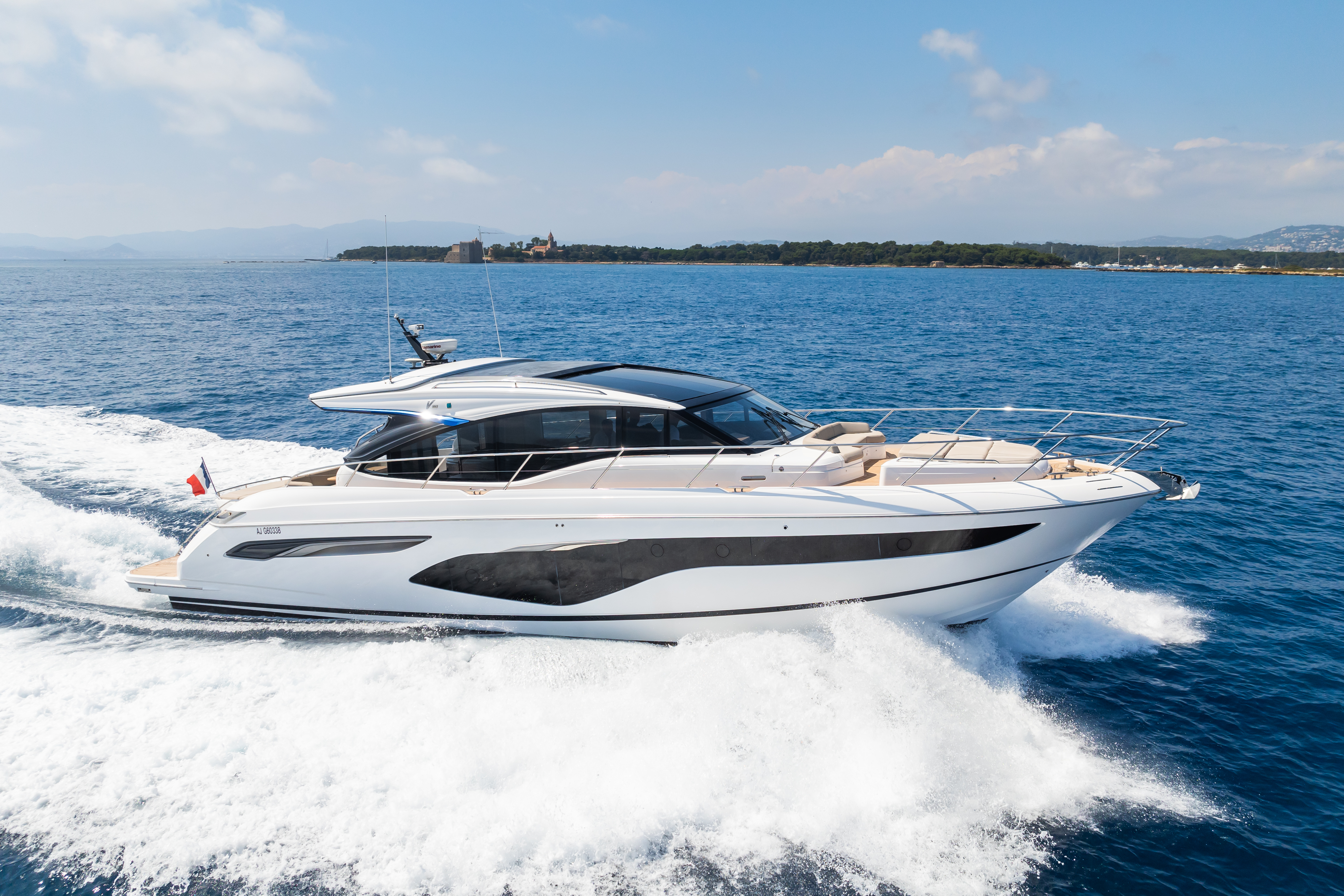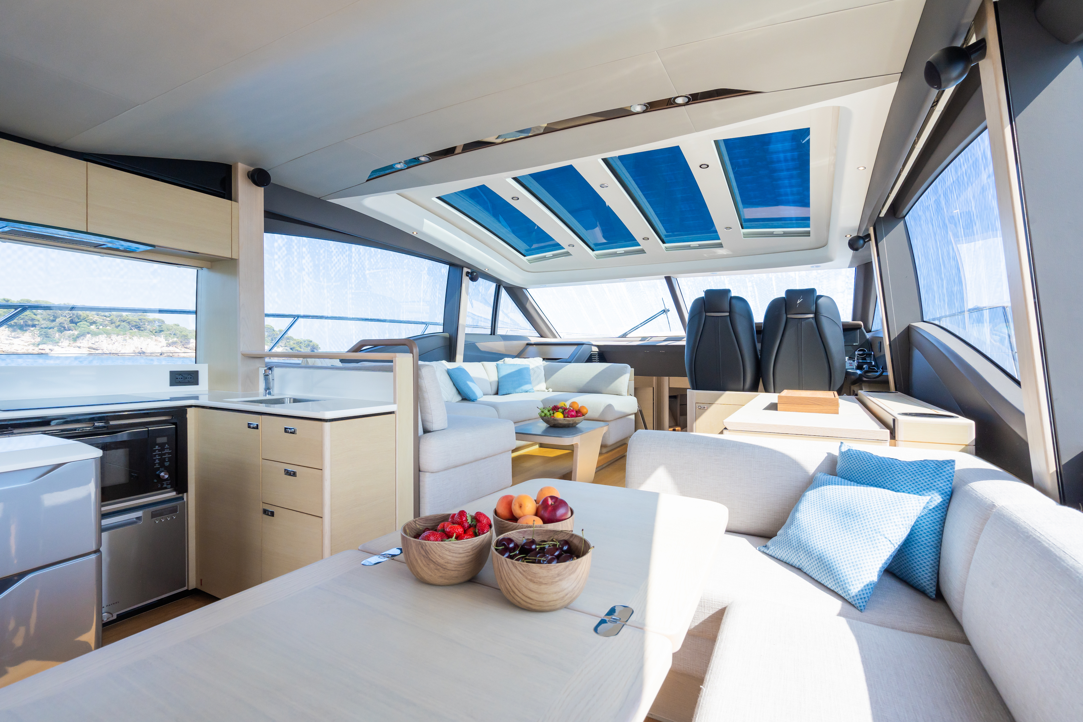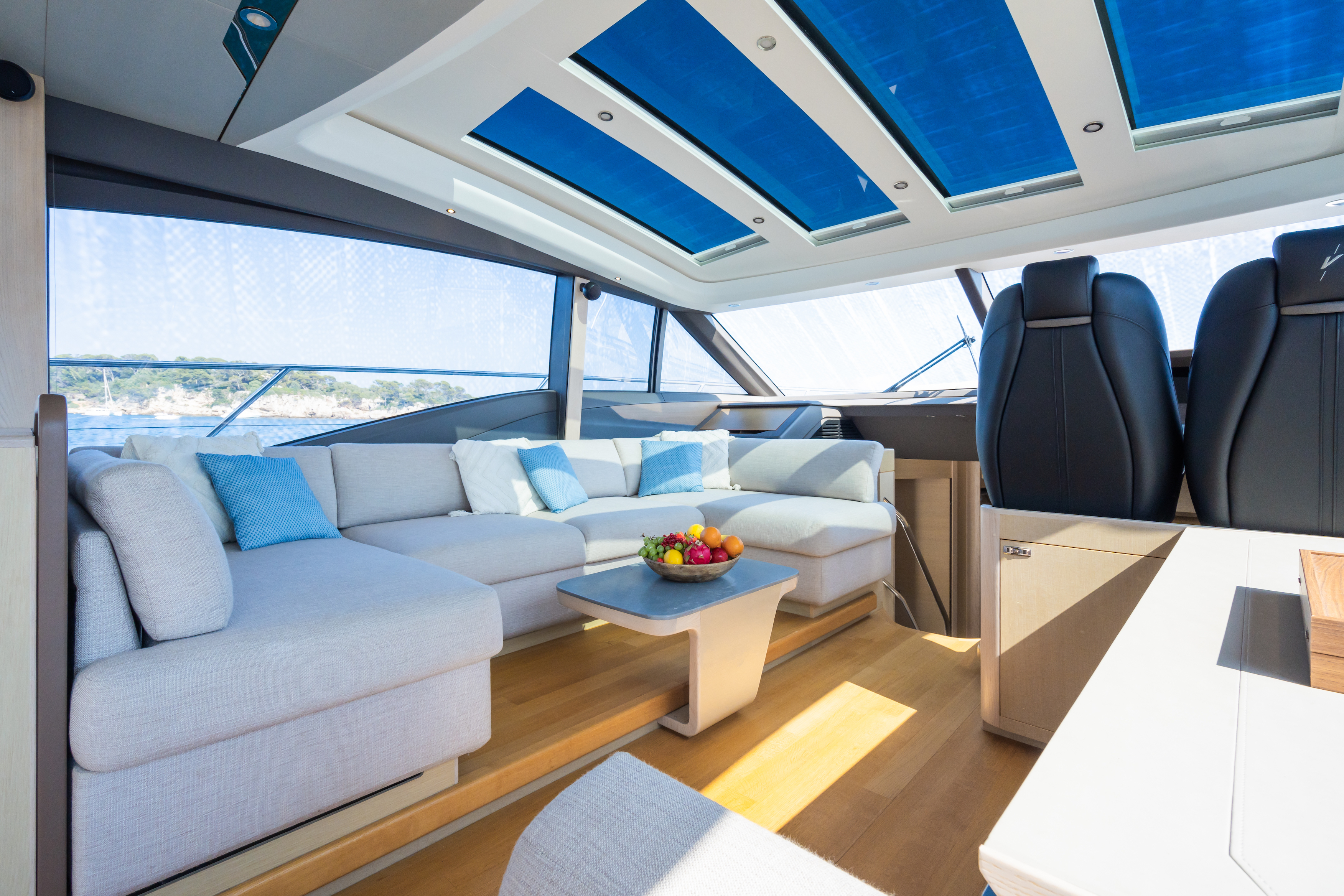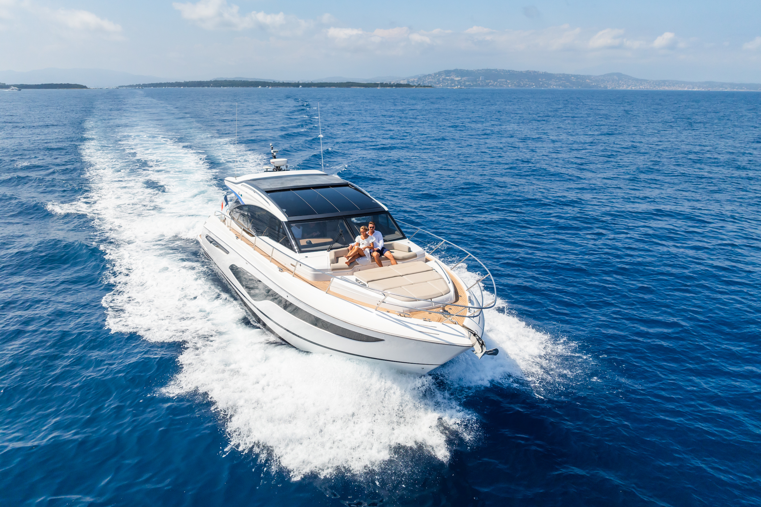 - Design & Comfort: Combines sporty elegance with comfort—spacious cockpit, main saloon, open dining area, and panoramic retractable hardtop.