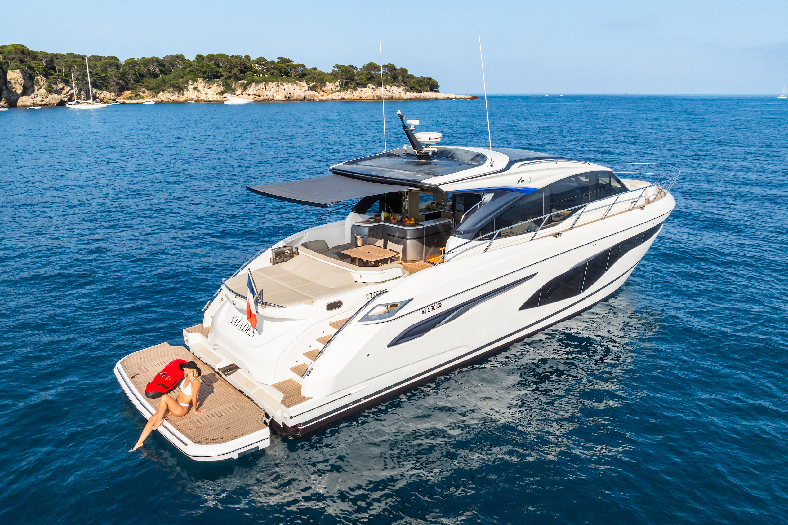 - Water Access & Storage: Hydraulic bathing platform for easy water access; garage for tender and water toys.