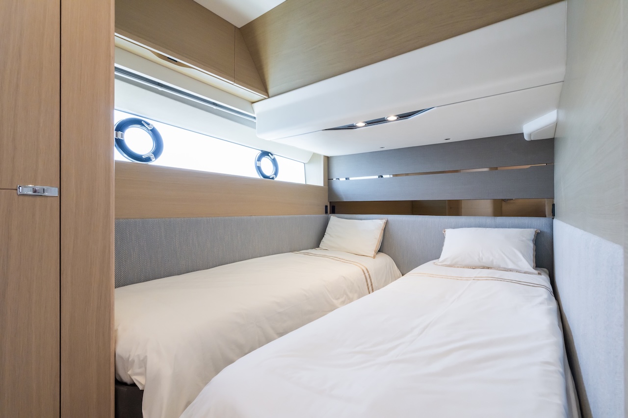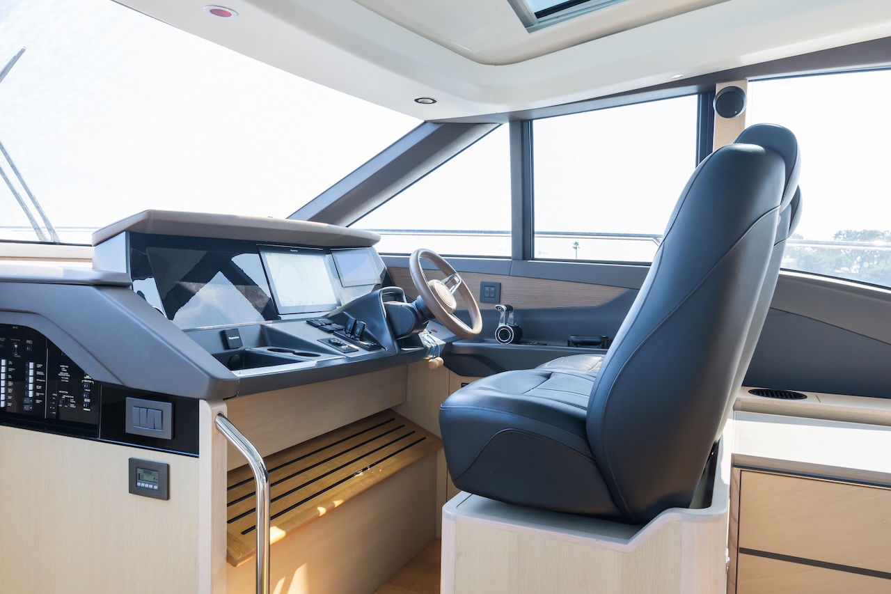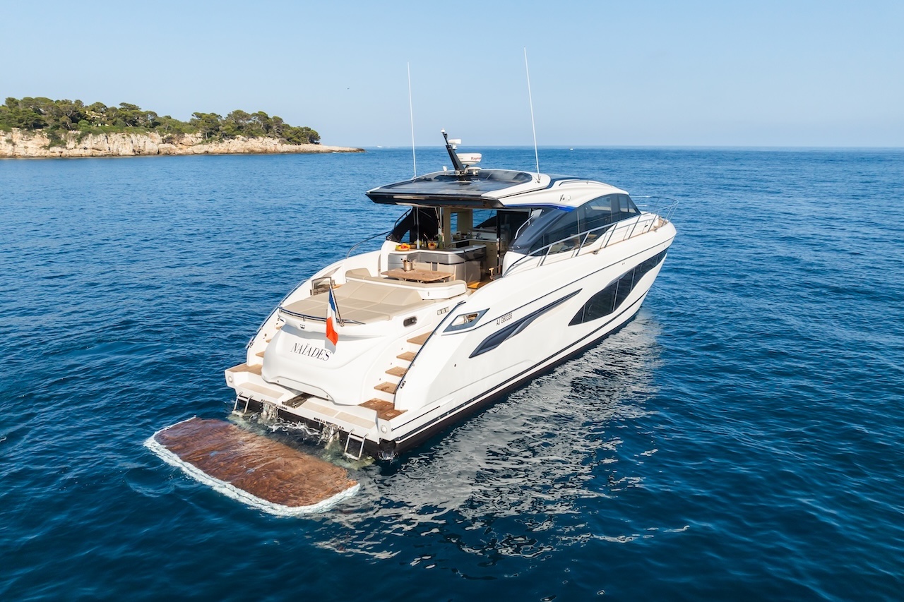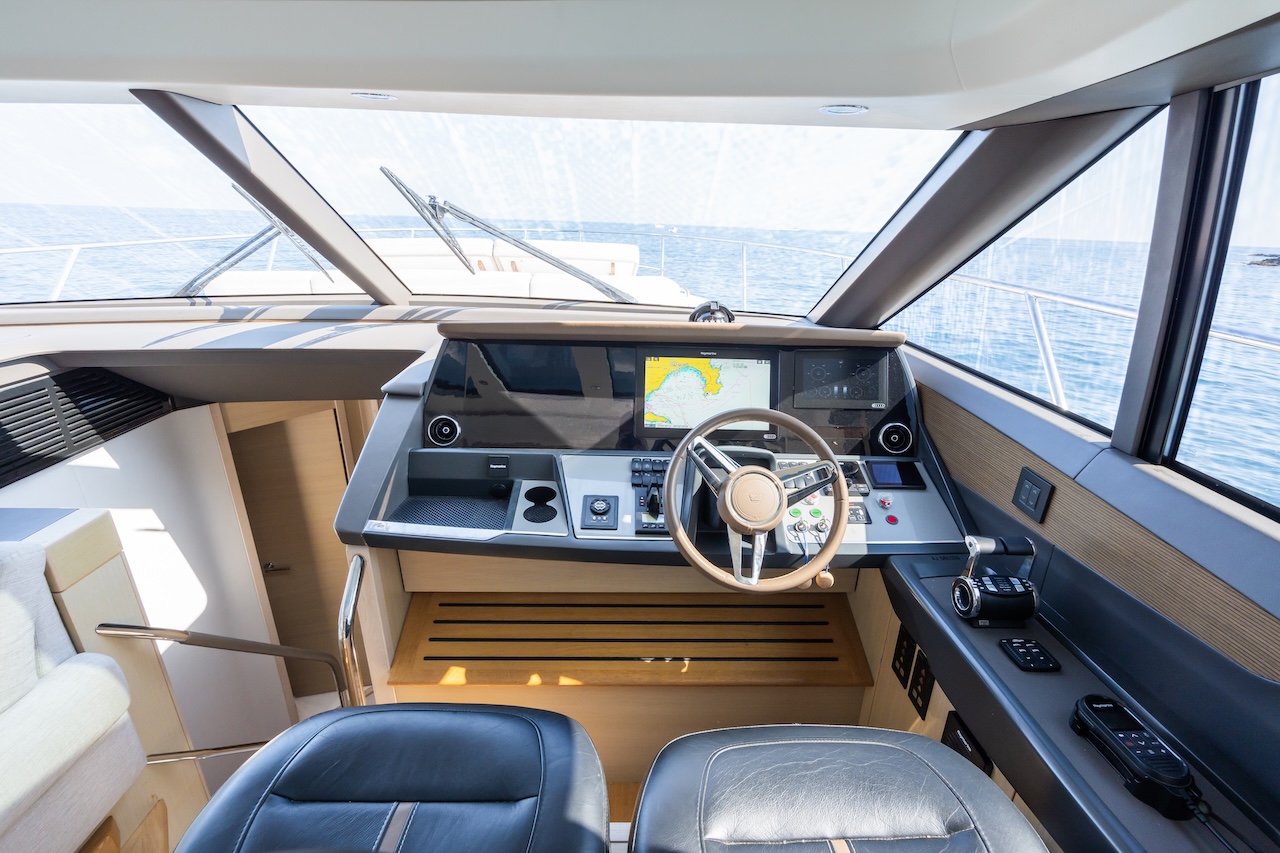 Key features: Great dynamics, maneuverability and responsiveness / High speed for the class / Seaworthy hull from renowned Bernard Olesinski architects / Sporty, but elegant exterior design from Pininfarina / Reasonable fuel efficiency for the class / Variety of finish materials / Large side windows / Galley between the saloon and the aft cockpit / Extra crew cabin / Premium Naim audio system as part of a standard package / Opportunity to store a tender on board / Hydraulic bathing platform / Gyro stabiliser Seakeeper / Low engine hours