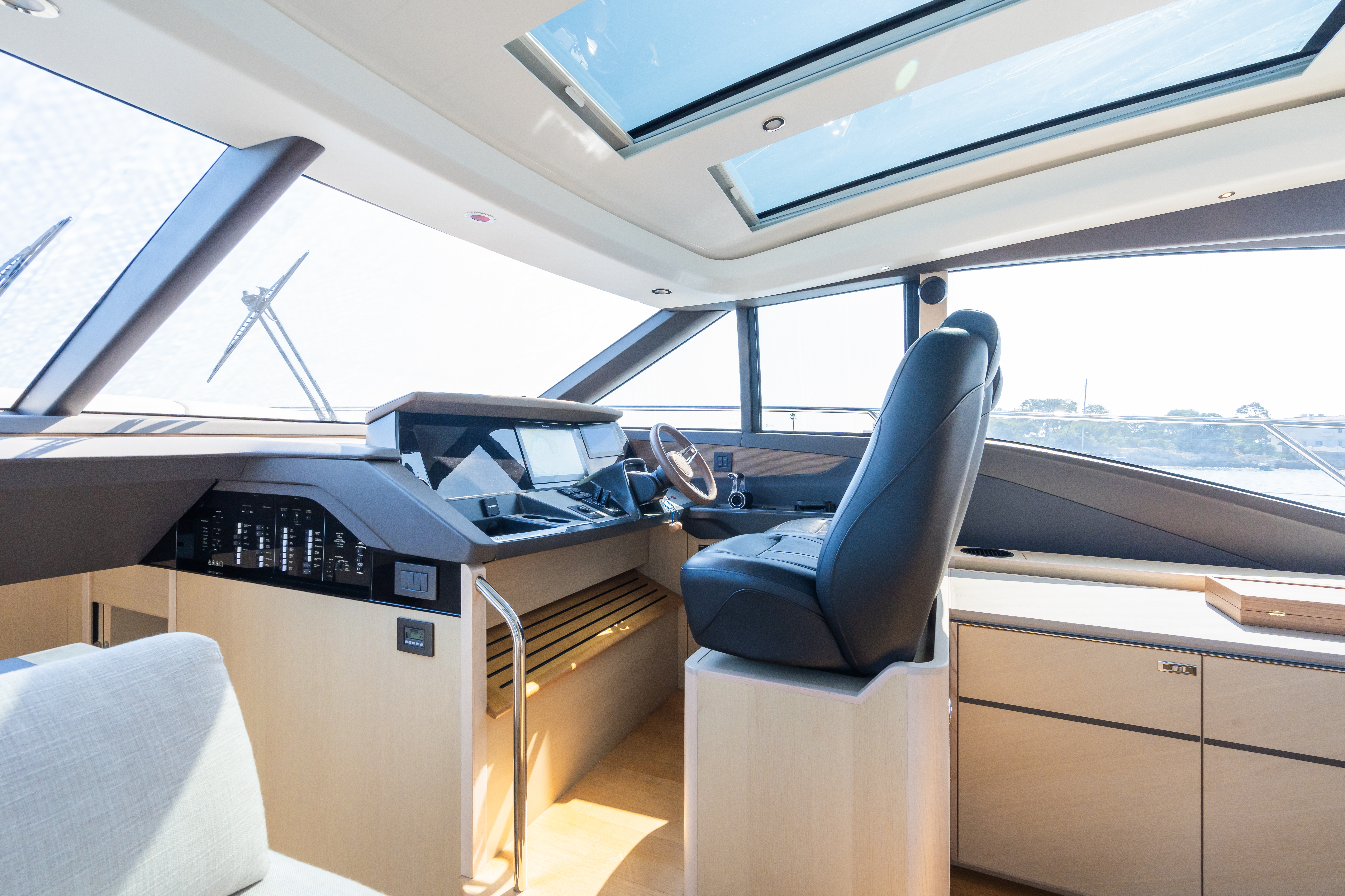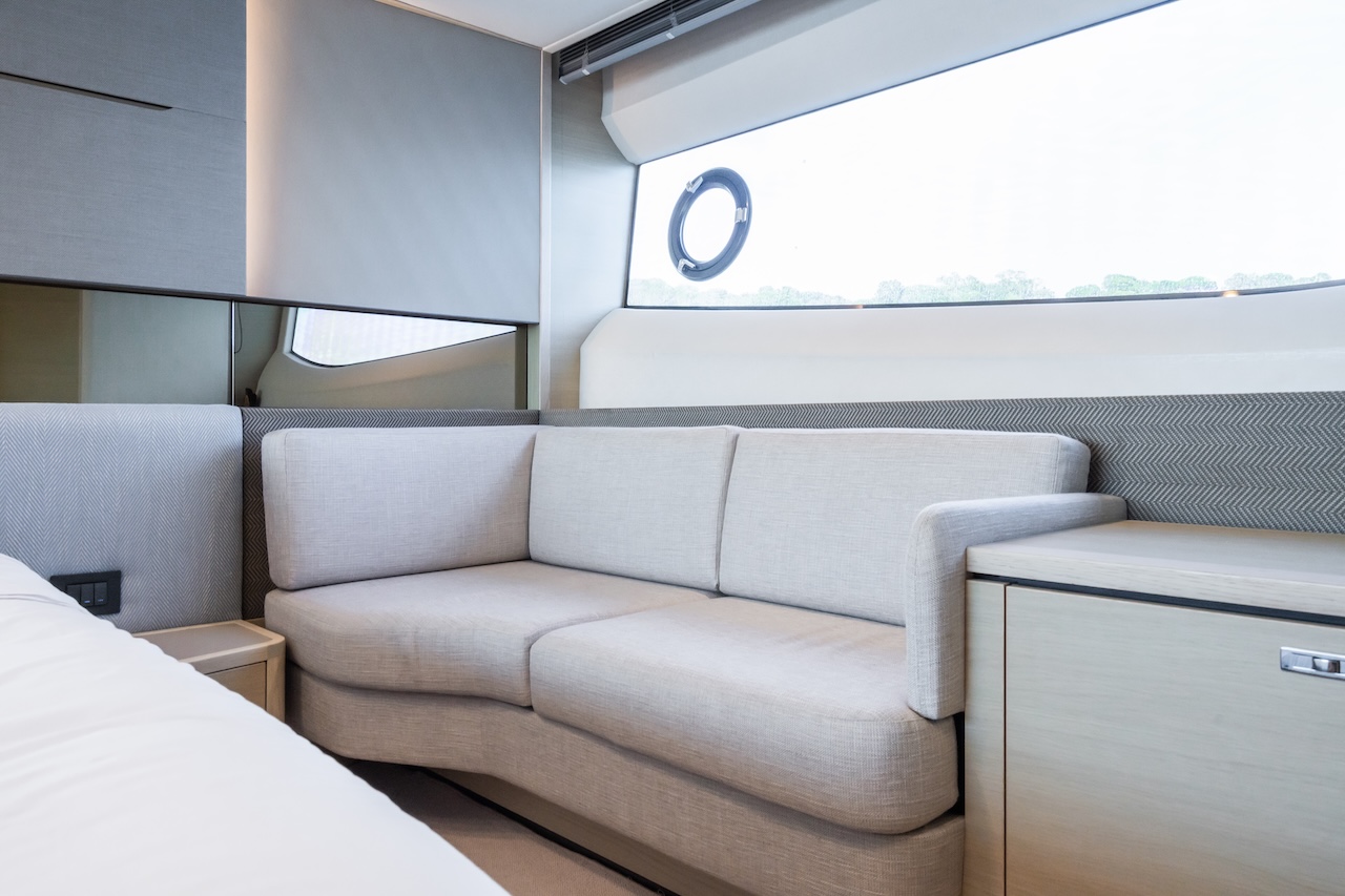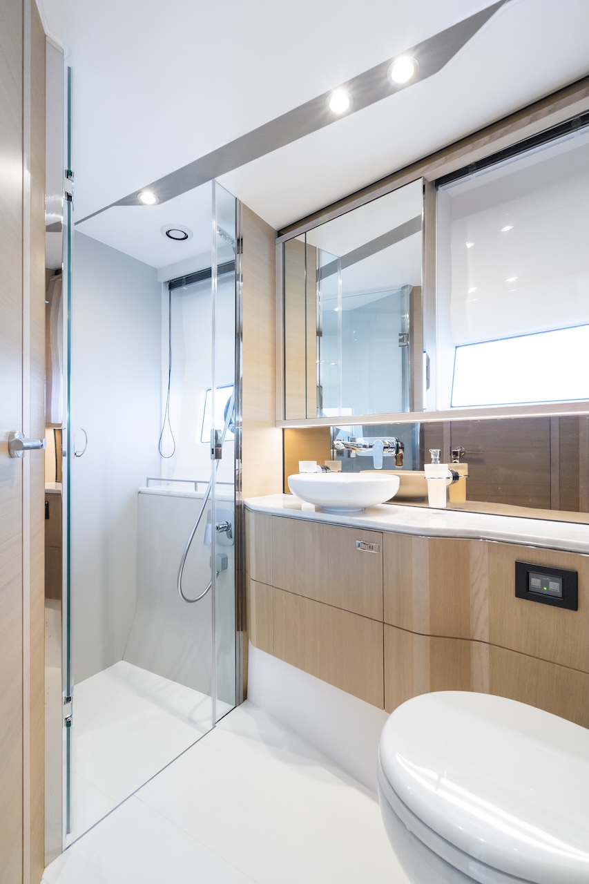 Key features: Great dynamics, maneuverability and responsiveness / High speed for the class / Seaworthy hull from renowned Bernard Olesinski architects / Sporty, but elegant exterior design from Pininfarina / Reasonable fuel efficiency for the class / Variety of finish materials / Large side windows / Galley between the saloon and the aft cockpit / Extra crew cabin / Premium Naim audio system as part of a standard package / Opportunity to store a tender on board / Hydraulic bathing platform / Gyro stabiliser Seakeeper / Low engine hours